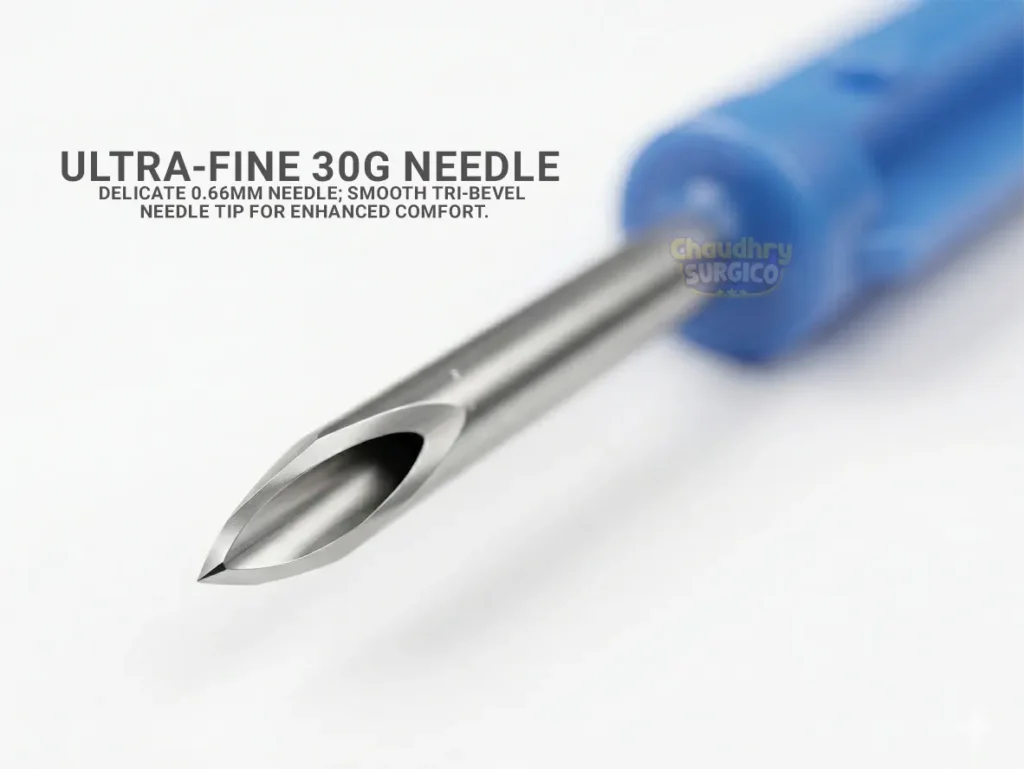 - Fine 30G gauge (0.66mm diameter) for reduced pain.